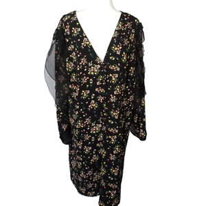 Second Sight Damen schwarz Blumen Freizeit kurzes Kleid Langarm Rüschen Größe 7