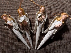 4 geflügelte himmlische Engel Eiszapfen geformte Harz Ornamente 5" mit verschiedenen Designs EUR 12,81