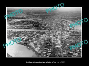 OLD LARGE HISTORIC PHOTO OF BRISBANE QUEENSLAND AERIAL VIEW OF THE CITY c1955