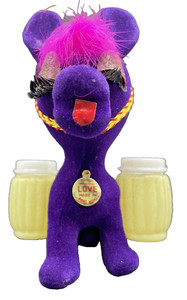 1 lila Vintage beflockte Donkey Salt & Pepper Hong Kong Love Wimpern neu aus altem Lagerbestand
