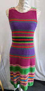 Ralph Lauren mehrfarbig gestreiftes mittellanges Leinen Strickkleid Gr. M (10-12)