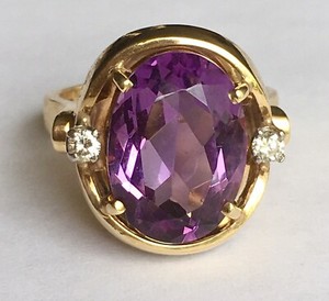 Ring 14 Karat Gelbgold ovaler facettierter Amethyst und Diamant