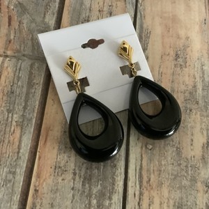 Vintage 80er Jahre Ohrhänger durchbohrt schwarz Kunststoff Träne Tropfen in goldfarben