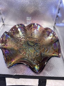 Hübsche elektrische alte Imperial Carnival Glas Lavendel Stiefmütterchen Schale tolle Farbe!!!! EUR 73,01