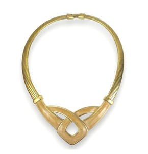 Vintage Napier Pfirsich Knoten Emaille Gold Omega Halsband Halskette Choker
