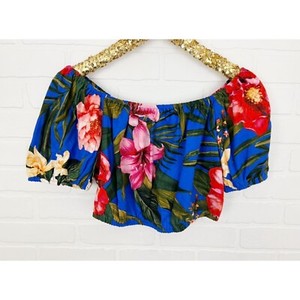 Neu ohne Etikett Cupcakes und Kaschmir Leinen schulterfrei Blumenmuster Puffärmel bauchfreies Oberteil Medium EUR 11,18EUR 17,20