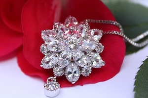 ZK27 Anhänger Kette Halsketten Collier Zirkonia Perlen Schmuck Damen Weißgold PL