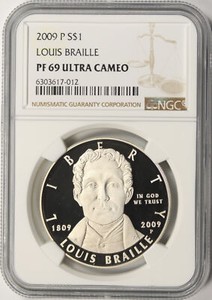 2009-P Louis Braille 1 $ Commemorative Dollar NGC PF69UCAM