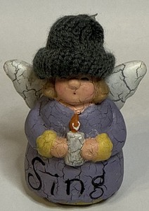 Weihnachtsschmuck Engel mit Kerze "Sing" Strickmütze 3,25" groß Crackle Finish