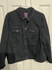 Gloria Vanderbilt schwarze Jeansjacke, Nieten, 2X