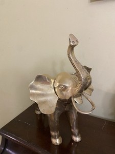 Vintage MCM große Messing Elefant Figur mit Rüssel nach oben Viel Glück Dekor 14" hoch