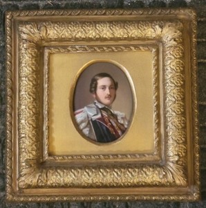 PRINZ ALBERT MINIATURGEMÄLDE AUF PORZELLAN IM FABELHAFTEN RAHMEN UM 1840er JAHRE
