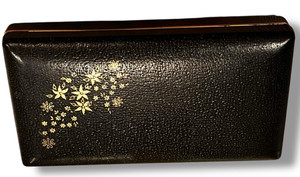 Vintage MCM rechteckige Hardcover Schmuckschatulle schwarz mit rotem Velours innen