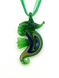 Lampwork Kunst Glas Seepferdchen Anhänger/Ornament, 2,5" Höhe x 1,3" mit Gold Wachskordel