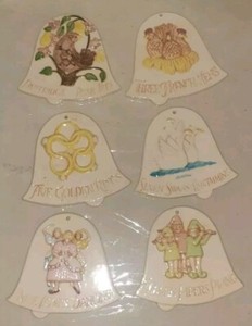 6er - 12er Set Twelve Days Of Christmas 2-seitige Keramik Ornamente handbemalt Vintage