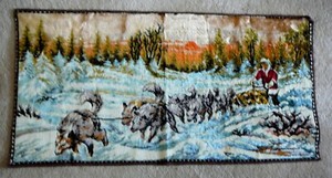 HUNDESCHLITTEN REISEN MITTERNACHTSSONNE Vintage ITALIEN HERGESTELLT WANDTEPPICH 37" x 19" - EUC EUR 13,00