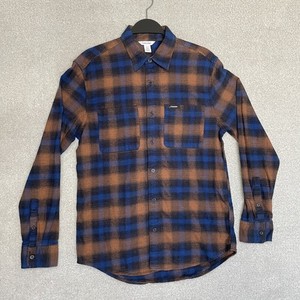 Calvin Klein Herren SMALL Langarm Button Down Flanell Hemd blau orange kariert
