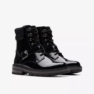 NEU UND VERPACKT Clarks Mädchen PRAG SCHNALLE K schwarze Lackleder Stiefeletten