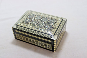 Holz Schmuckkästchen Vintage Intarsien Perlmutt Made Egypt 5-3/4 x 4-1/2 x 2"
