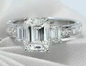 3Ct Emerald Cut Simulated Diamond Engagement Ring 14K White Gold Plated Silver