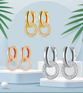Damen Ohrringe Zirkon 925 Silber Ohranhänger Creolen Gold Silber Rose Gold