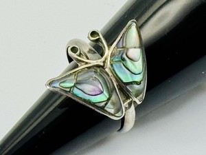 Vintage Taxco Mexiko Sterlingsilber Schmetterling Ring Abalone Inlay verstellbar