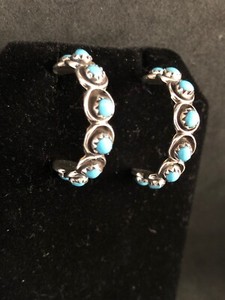 Türkis Creolen 1,5" Ohrringe Zuni Florenda Lonasee Sterlingsilber 3012