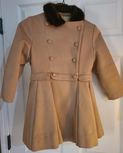 Vintage Doby Original Kleinkind Mädchen Mantel Wolle Kunstfell Kragen Größe 4 /5