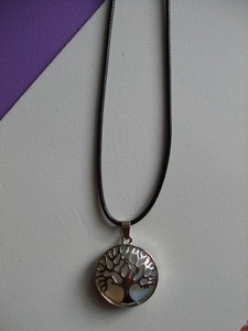Kette mit Anhänger Lebensbaum Silber/ violett gelb durchscheinend am Bändchen