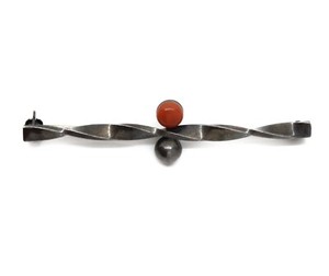 Brosche - 985er Silber - Koralle Cabochon Button - Handarbeit - Vintage Alt