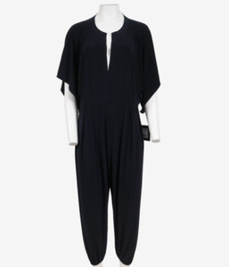 Norma Kamali Rectangle Jog Jumpsuit Size Large Midnight Blue Poly Plissee V