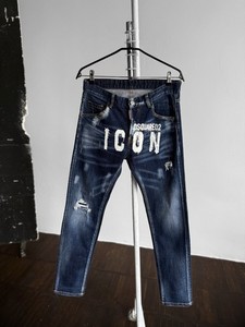 Dsquared2 Herren Blue Distressed ICON Big Logo Graphic Denim Jeans Größe - 46, S