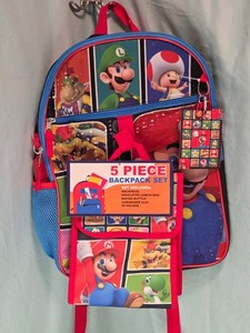 Super Mario Bros. Rot 5-teiliges Rucksack Set Neu mit Etikett