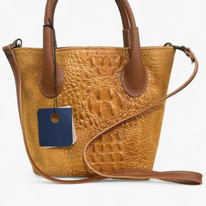 Massimo Castelli Italian Convertible Bucket Tote Bag Croc Embossed Leather Suede