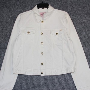 Juicy Couture weiße Jeansjacke Damen XL goldene Knopfleiste Made in USA