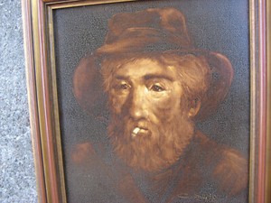 1890er KANADISCHER FISCHER MR. ADAMS mit PFEIFE Ölgemälde auf Karton signiert? antik