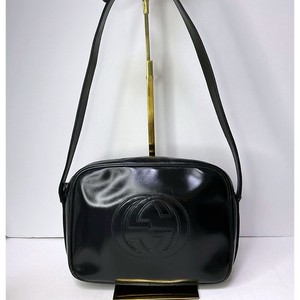 GUCCI Schultertasche schwarz Lackleder echt aus Japan