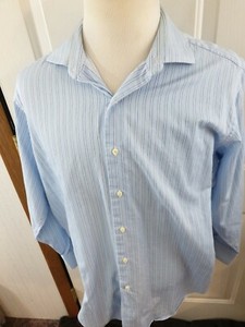 Brooks Brothers Hergestellt in den USA Stoff gewebt in Italien 16,5-33 blau gestreift GUC-EXC EUR 20,47
