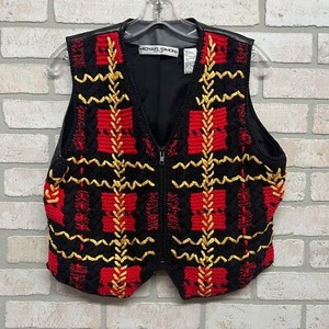 Michael Simon Vintage Weste Damen Größe Medium schwarz kariert durchgehender Reißverschluss Kunstleder hinten