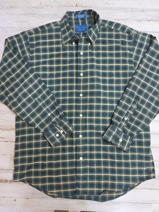Grün & hellbraun kariertes Towncraft langärmliges Polohemd mit Knopfleiste knitterfrei