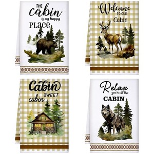 4-teiliges Kabinen Küchentücher Set 23. 6 x 16 Zoll Wildtiere Hirsch Bär Schale Handtuch... EUR 11,35