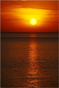 SCHÖNE UNTERGEHENDE SONNE Foto Poster BERNSTEINLICHT plätscherndes Wasser OZEAN 20x30