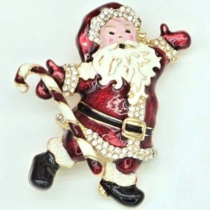 NAPIER Holiday Christmas Jolly Santa with a Candy Cane Kristall/Emaille Brosche Anstecknadel EUR 19,01EUR 41,48