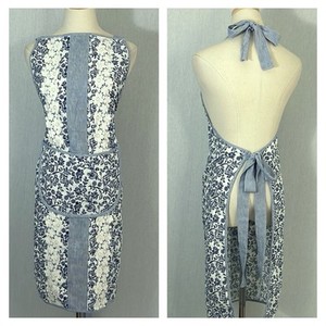 Neu ohne Etikett Sur La Table blau weiß Blumen Häkelblume Küchenschürze 100 % Baumwolle