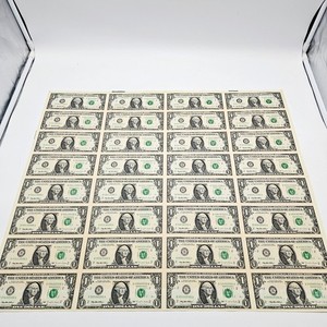 Ungeschnittener Bogen mit 32 1 Dollar Scheinen Serie 1995 Notaphilie Währung