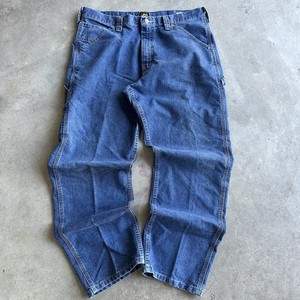 Y2K Lee Latzhose Carpenter Jeans Herren 34x30 blau Denim Baumwolle weit distressed