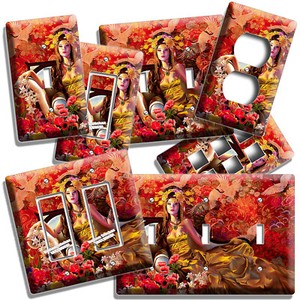 ASIAN BEAUTY WITH HAND FAN SWITCH OUTLET WALL COVER PLATE ROOM BEDROOM ART DECOR EUR 8,60 bis EUR 28,39