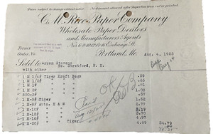 CM RICE Paper Co Billhead 1925 Portland Maine Großhandel Papierhändler antik
