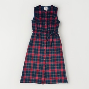 Lanz Original Damen 7 / 8 Wollkleid ärmellos Midi kariert rot Vintage NEU