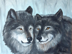 Wolf Original Gemälde Tier 12 mal 9 Paar Liebe Wölfe Öl Wandbild